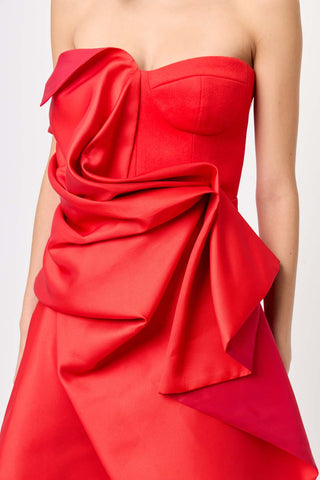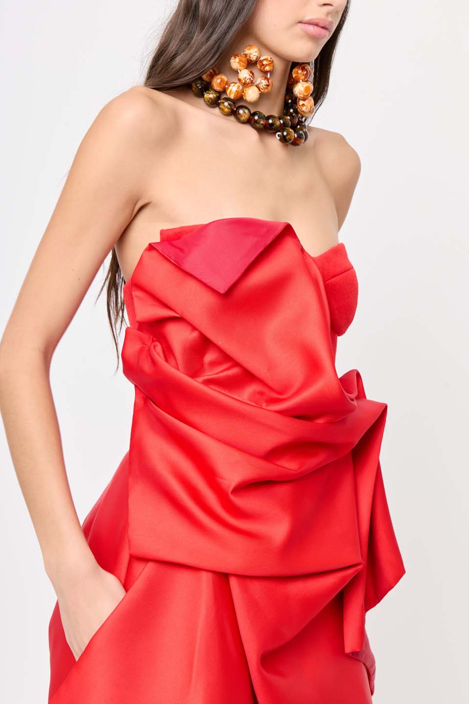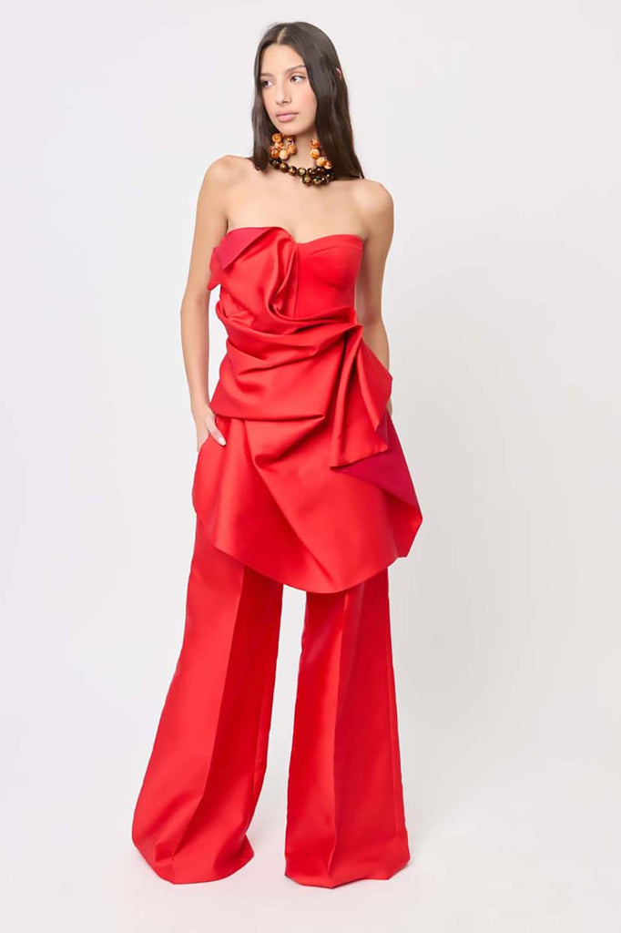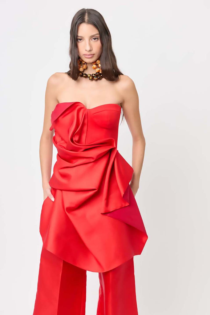 Exude radiance with the Fire Bustier in red, a structured bustier featuring asymmetric draping made of Mikado fabric. This bustier combines elegance and modernity with a refined edge, making it a striking piece. Pair it with our Sublime Pant and our fire coat for a complete look.