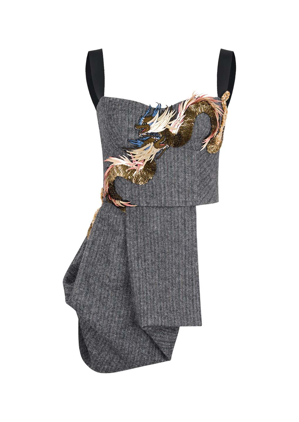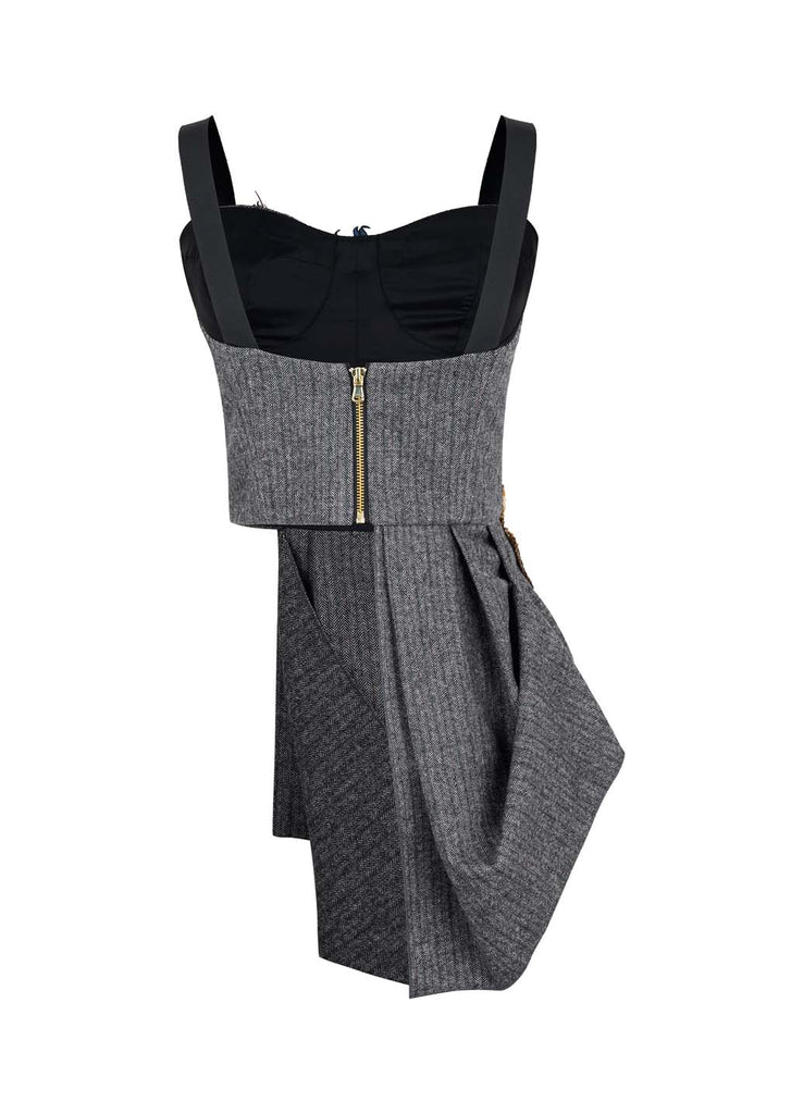 Capture attention with our classic Smoke Bustier, crafted from our iconic wool fabric. This bustier in dark grey is designed to stand out and leave a lasting impression.