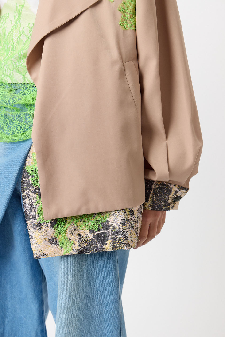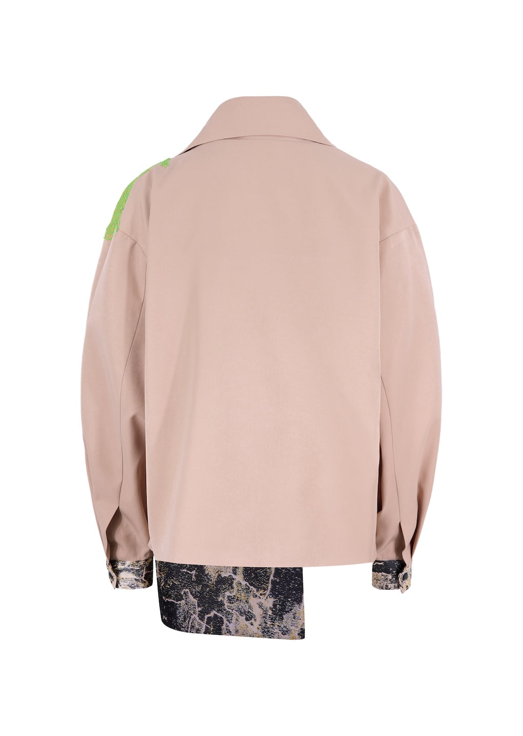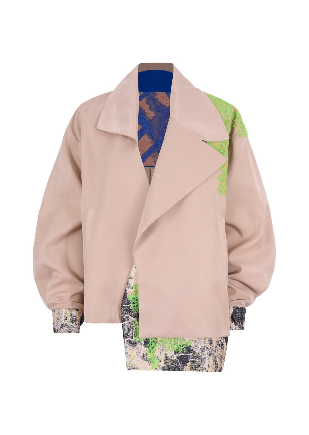 - Description: Oversize jacket with asymmetrical collar