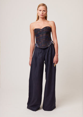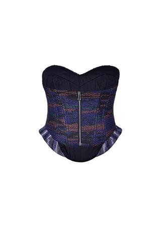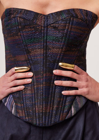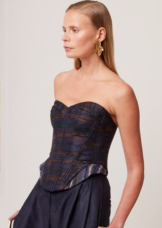 Discover the allure of our Eterno Bustier, a long, fitted, strapless piece crafted from luxurious jacquard in a sophisticated blend of dark hues. This timeless yet modern design effortlessly combines elegance with a contemporary edge, ensuring you captivate attention wherever you go.