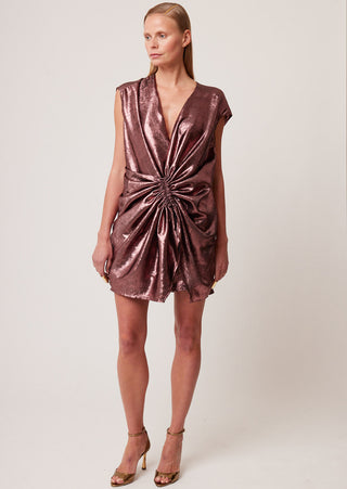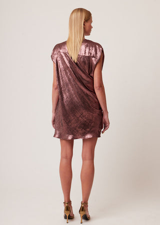 The Kibili Dress is a criss-cross drapped dress made from metallic etro in our Dark Blood color. The eye-catching colors adds a dynamic element, ensuring you a strong fashion statement.