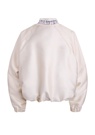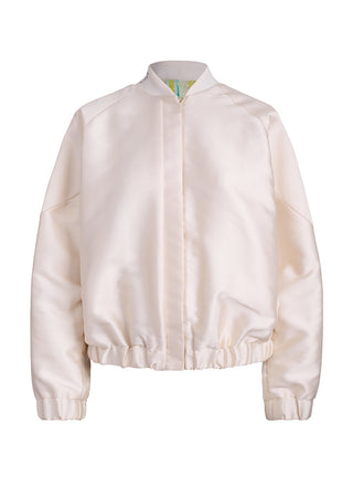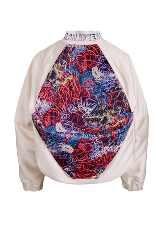Introducing our effortlessly stylish oversized bomber jacket in ivory. Designed with a deliberately oversized silhouette, the Backpack jacket exudes modernity. What makes it truly unique is its transformative design, when opened, it seamlessly converts into a functional backpack, combining fashion with versatility.