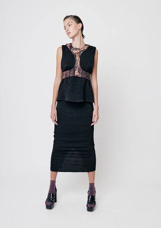 Elevate your basics with a touch of glamour! Introducing our Code Top B, a wardrobe essential with a twist. Crafted with crushed fabric in black is the epitome of understated elegance and everyday luxury. Style it with the Hydro skirt for an iconic look.