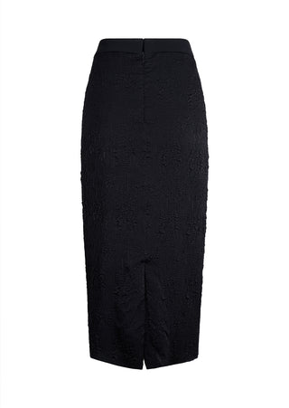 Elevate your looks with the Hydro Skirt, a blend of sophisticated artistry. This black midi skirt showcases elegance.