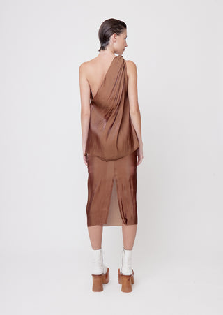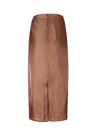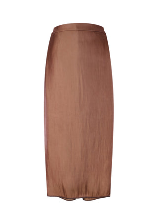 Elevate your looks with the Ikehu Skirt, a blend of sophistication and abstract artistry. This midi chiffon skirt in brown is perfect for evening events, cocktail parties, a night out, or a casual look.