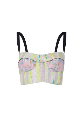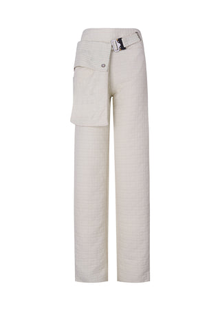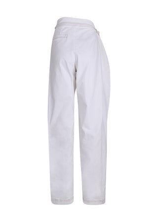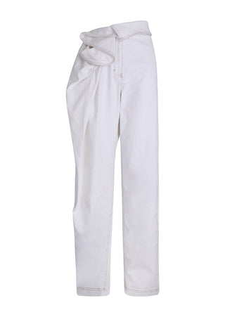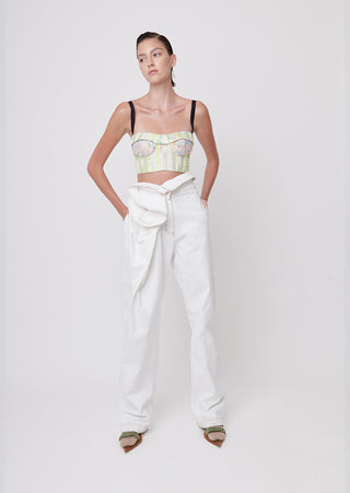 Now a classic; this draped loose-fit pant with a unique front draped in white is a wardrobe essential. Wear it with the Neon bustier for a bold look. Style it with the neon bustier.