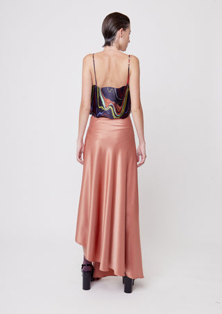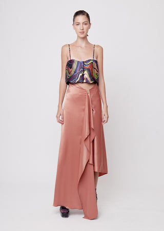 The Ripple top features spaghetti straps, making it a modern piece to your wardrobe. The straps add a subtle touch of sophistication. It pairs perfectly with our Sage skirt in coto.