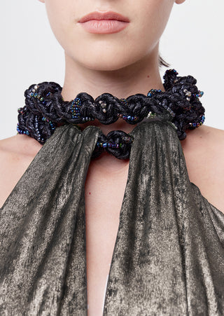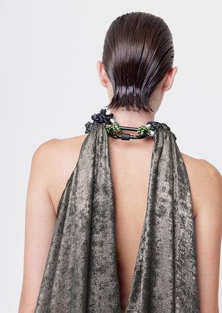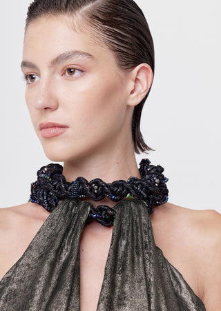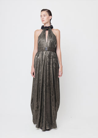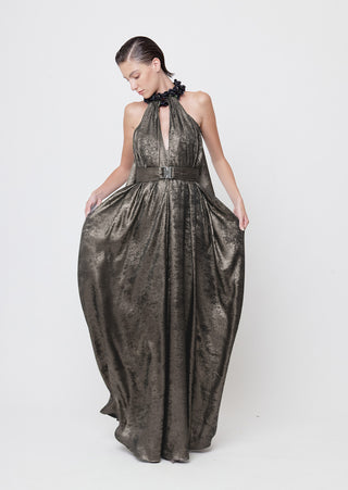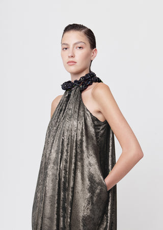 Elevate your evening elegance with our Tek Dress. This piece features a flowy V-neck silhouette made from pirita, making it incredibly versatile.