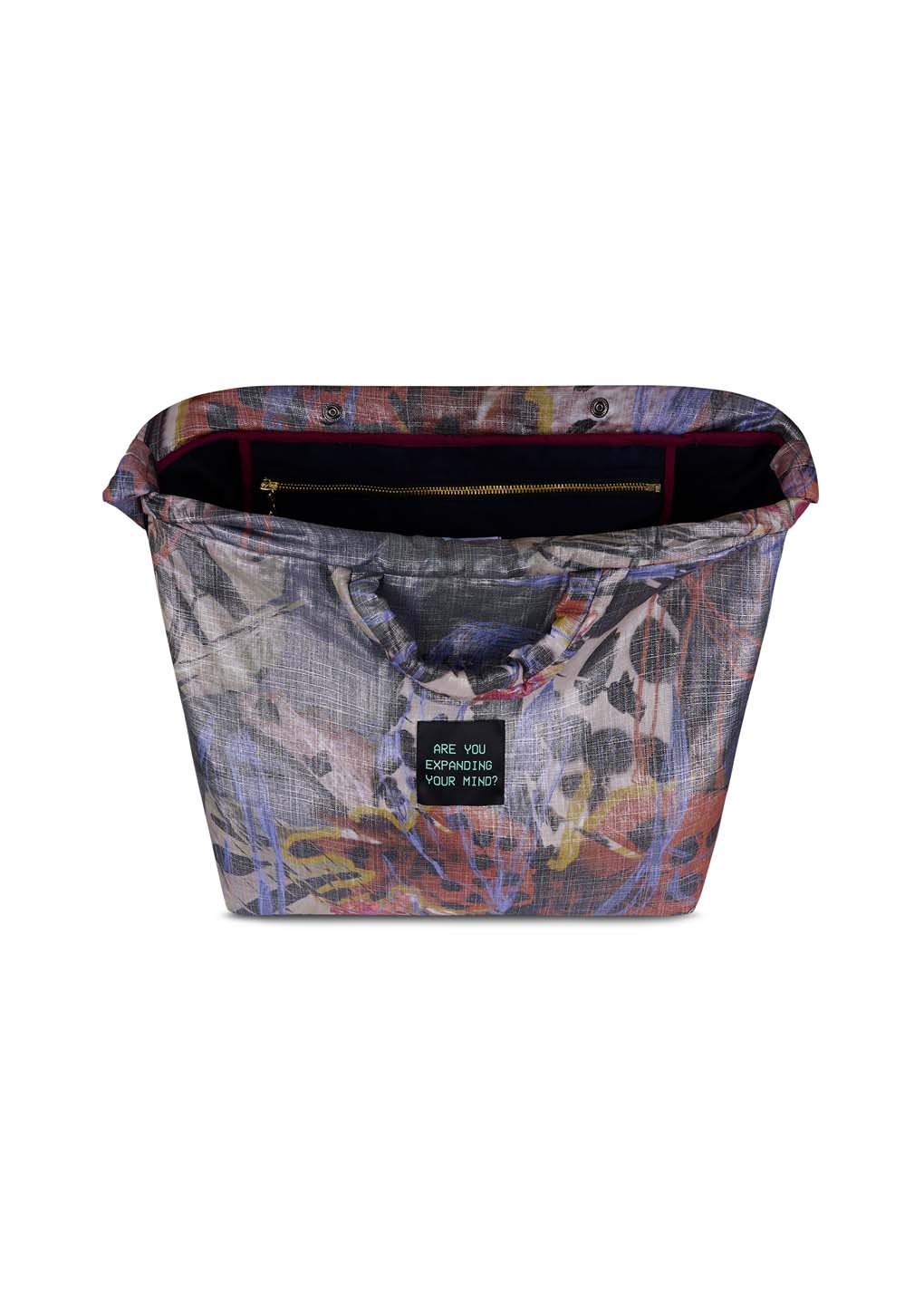 This perfectly oversized, heavy-duty cables print bag is a practical accessory that has become increasingly popular.