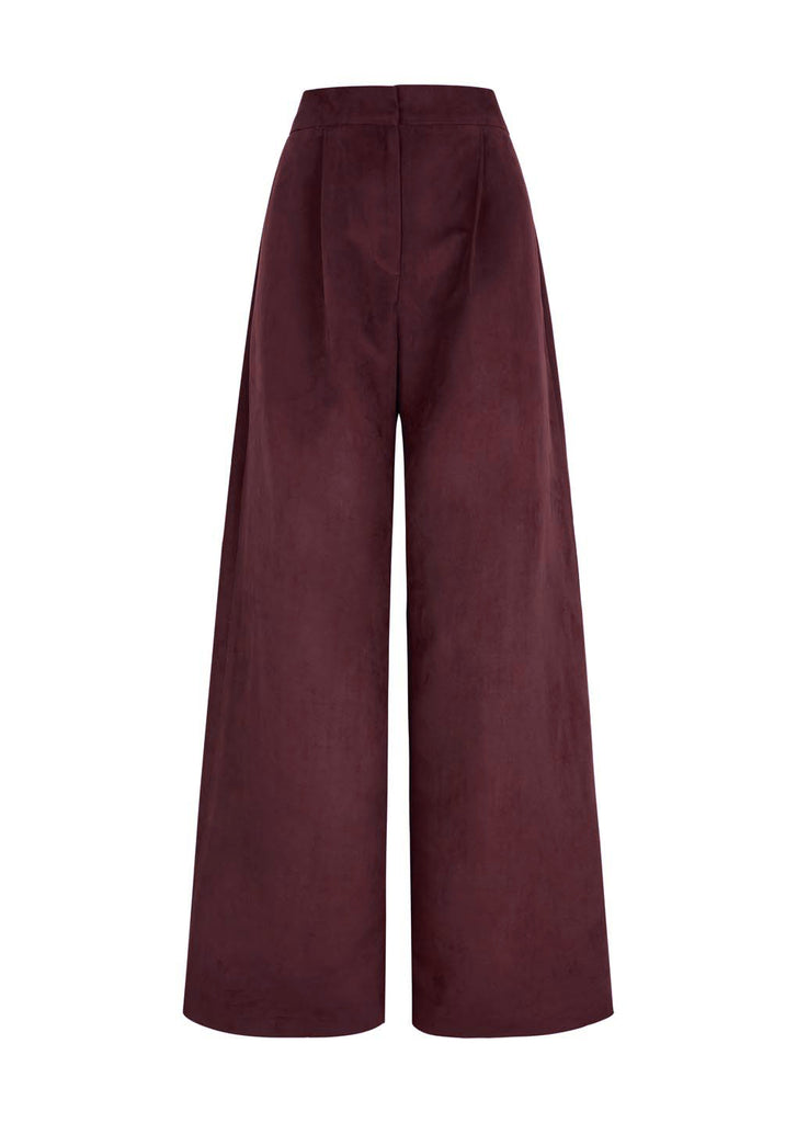 Discover our exclusive Wide Pant in burgundy. The unique pattern and bold design of the print are showcased beautifully across the relaxed silhouette of the pants, making them a standout piece in any wardrobe. Pair it with our fire bustier for a full look.