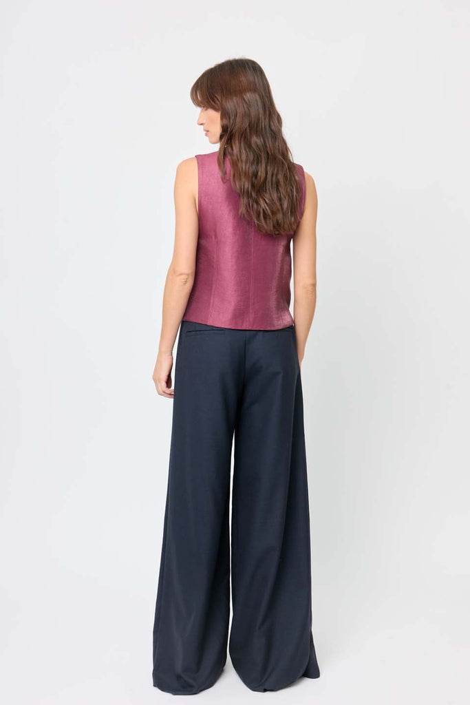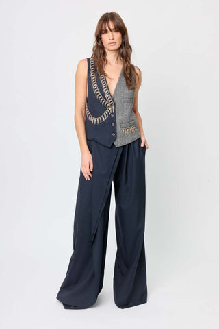 The Oak Pant features a perfect fit with a special touch, a front single - pleated stitched. Made with wool in navy they will be the most original piece in your closet. Its unique design allows for a variety of styling options, making it incredibly versatile. Pair it with our totem vest and our Daonda coat for a complete look.