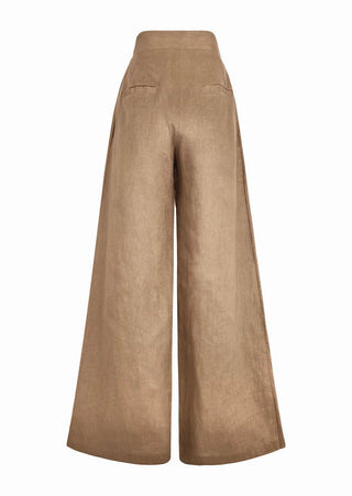 The Oak Pant features a perfect fit with a special touch, a front single-pleated stitch. Made with linen in camel, they will be the most original piece in your closet. Its unique design allows for a variety of styling options, making it incredibly versatile.